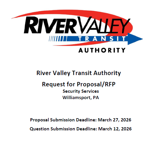 Security Services Proposal Submission Deadline: Marcy 24, 2026 Question Submission Deadline: March 12, 2026 INTRODUCTION River Valley Transit Authority (known henceforth as “RVTA”) invites and welcomes Proposals for professionally qualified Security Services for the publicly accessed transit center. Please take